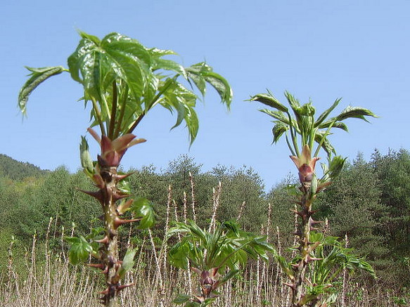 ▶초봄의 새싹을 개두릅나무라 하여 굳기 전에 채취하여 삶아